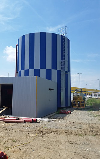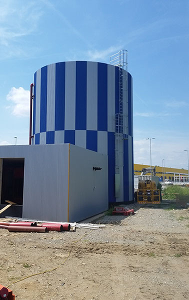 Sprinklerbehälter dienen zur Löschwasserbevorratung von selbstständigen Sprinkleranlagen