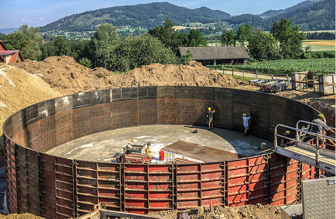 Die im jahrzehntelangen, härtesten Einsatz bewährte Arbeitstechnik und die von Lehner Systembau verwendete und technologisch ausgereifte Metallschalung bilden die Grundlage unseres Erfolges im Biogasanlagenbau. Durch ständige Weiterentwicklung, Verbesserung und Optimierung aller Arbeitsschritte können wir die ständig steigenden Anforderungen optimal erfüllen.