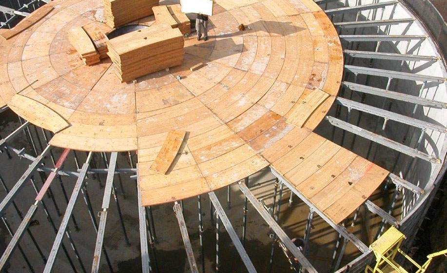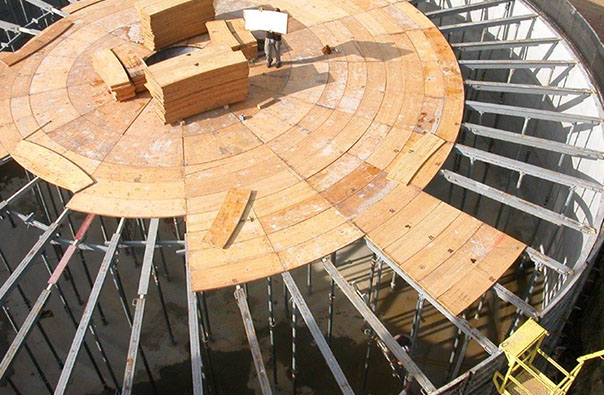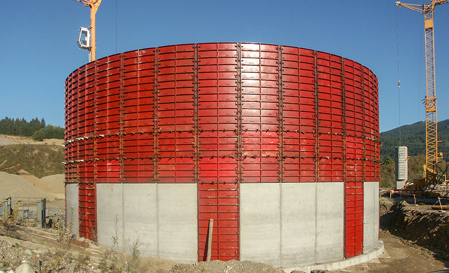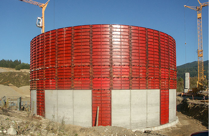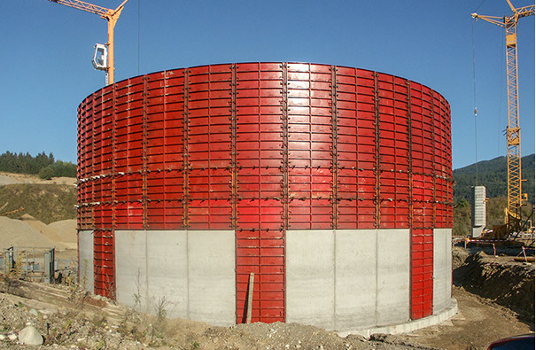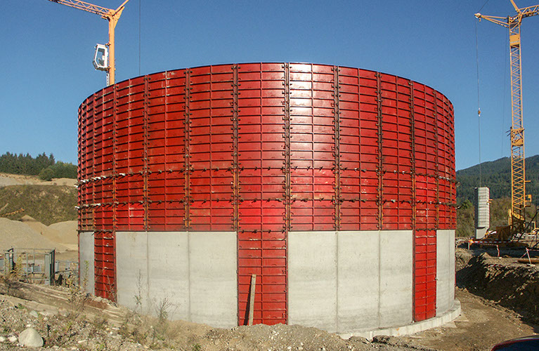 Lehner Systembau verwendet Klein- bzw. Großflächenschalungen - je nach Behältergröße und Bedarf, sowie Deckenschalungselemente geeignet für alle Durchmesser und Behälterhöhen. Für das Versetzen der Wand- und Decken-schalungen werden betriebseigene Kranfahrzeuge verwendet.